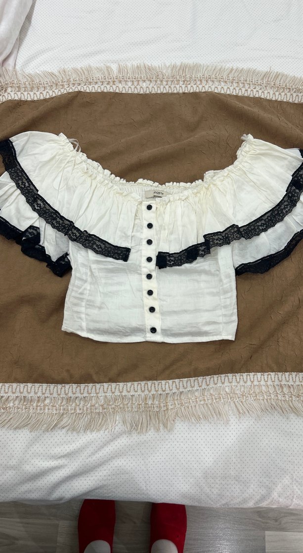 Pamuk saten kumaştan, tekne yaka ve siyah dantel detaylı beyaz fırfırlı bluz. Kısa kollu, arka lastikli dar kesim ve düğmeli ön tasarımı ile gotik ve bohem tarzı bir arada sunar. Üzerinde 40 yazıyor ama s-xs bedenlere uygun yakada lastik yerlerinde kopma var resimde görüntüledim şık sevimli gotik bir üst iade yok son fiyat
