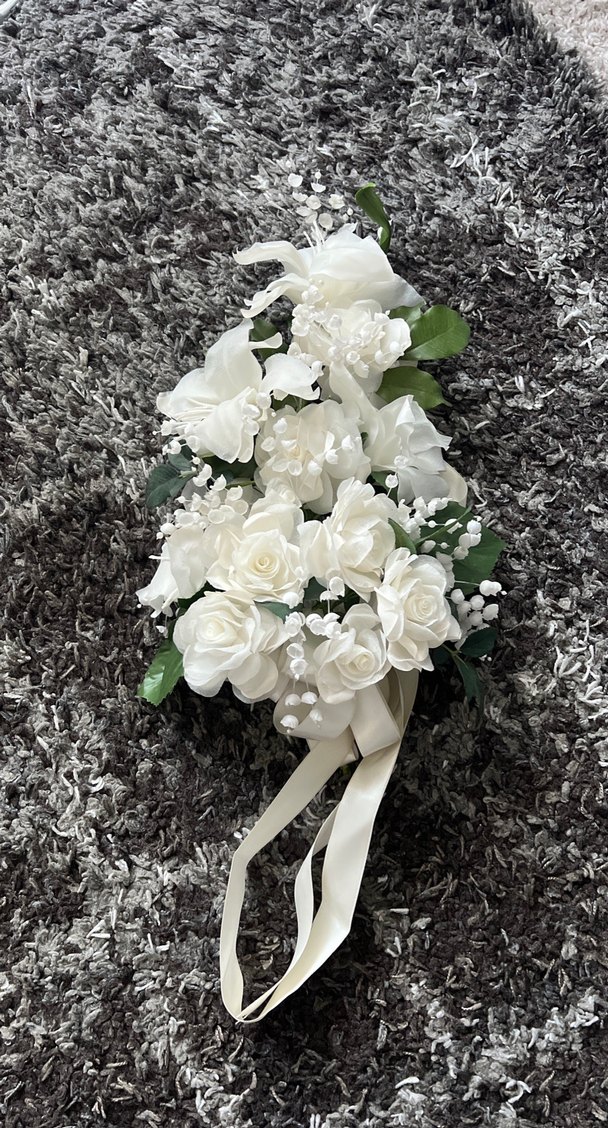 Dantel Detaylı Beyaz Gelin Buketi El yapımı