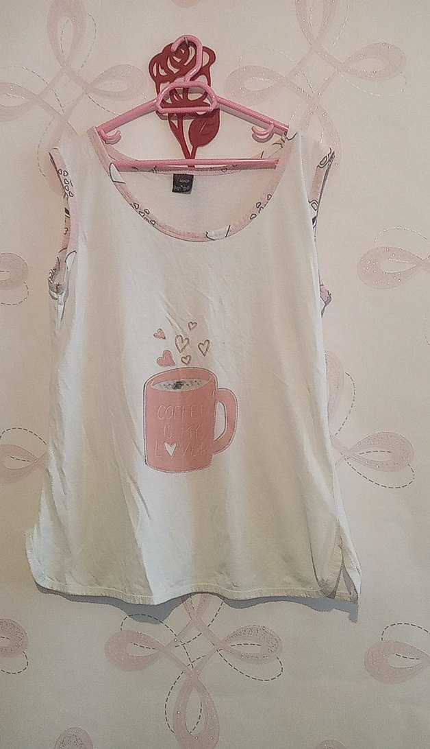 Beyaz, kolsuz hamile tişörtü, bol kesim ve pastel baskılı desenle dantel detaylarına sahiptir, günlük rahat kullanım için uygundur. ☕
