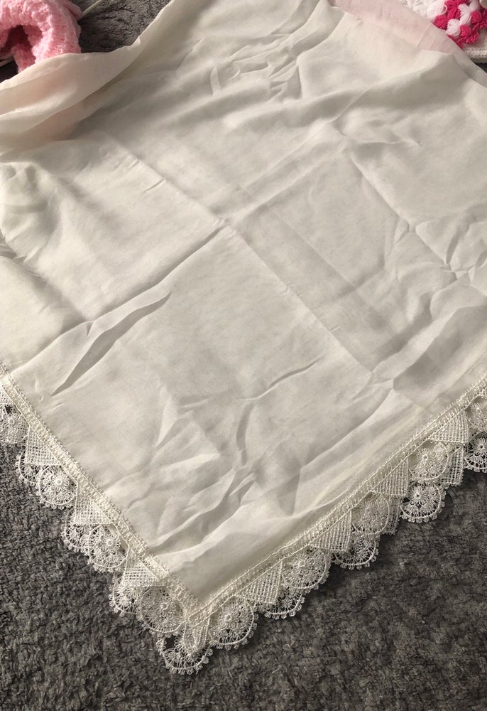 Dantel detaylı, ipeksi beyaz fular. Bohem tarzı ve rahat bir his sunar. Retro ve hippie stillerle uyumludur.