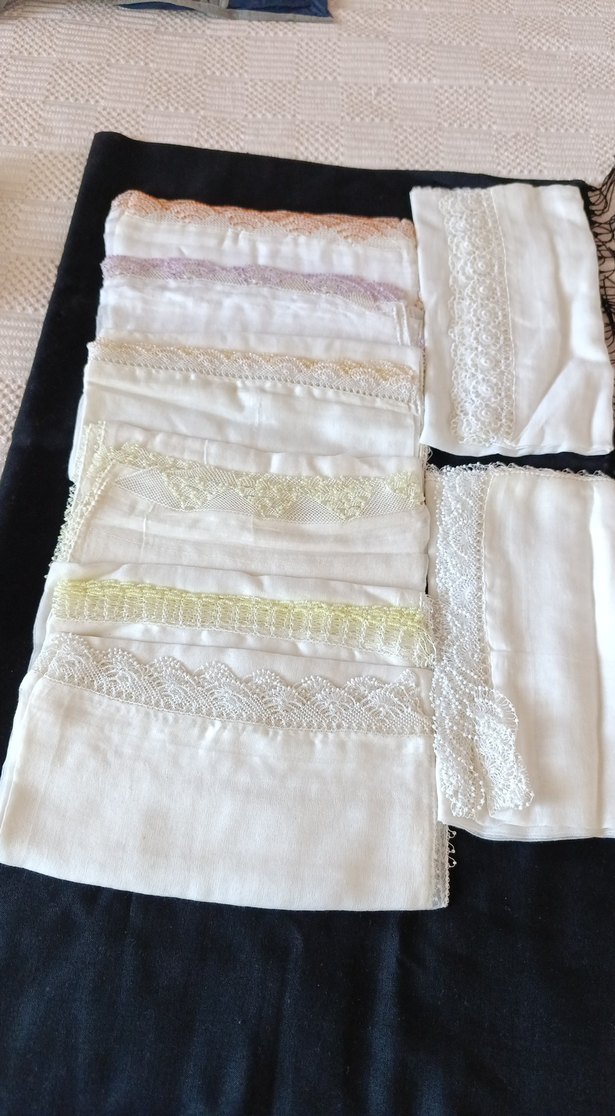 Yumuşak tekstil kumaştan yapılmış, dantel detaylı beyaz kadın fuları. Hafif tonlarda narin dantel işlemeleriyle vintage tarzda, klasik görünüme sahiptir. hepsi el yapımı iğne oyası