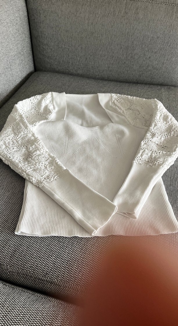 Beyaz renkli, uzun kollu, dantel detaylı, yuvarlak yakalı ve ince örme kumaştan yapılmış kadın kazak. Günlük kullanıma uygun, sade ve rahat bir tasarıma sahiptir. ❄️