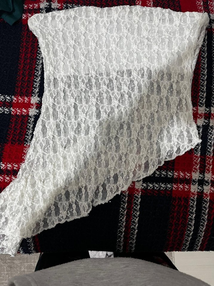 Sentetik kumaştan yapılmış, dantel detaylı beyaz kadın şalı. Rahat ve bohem tarzı, modayı takip edenler için uygun.