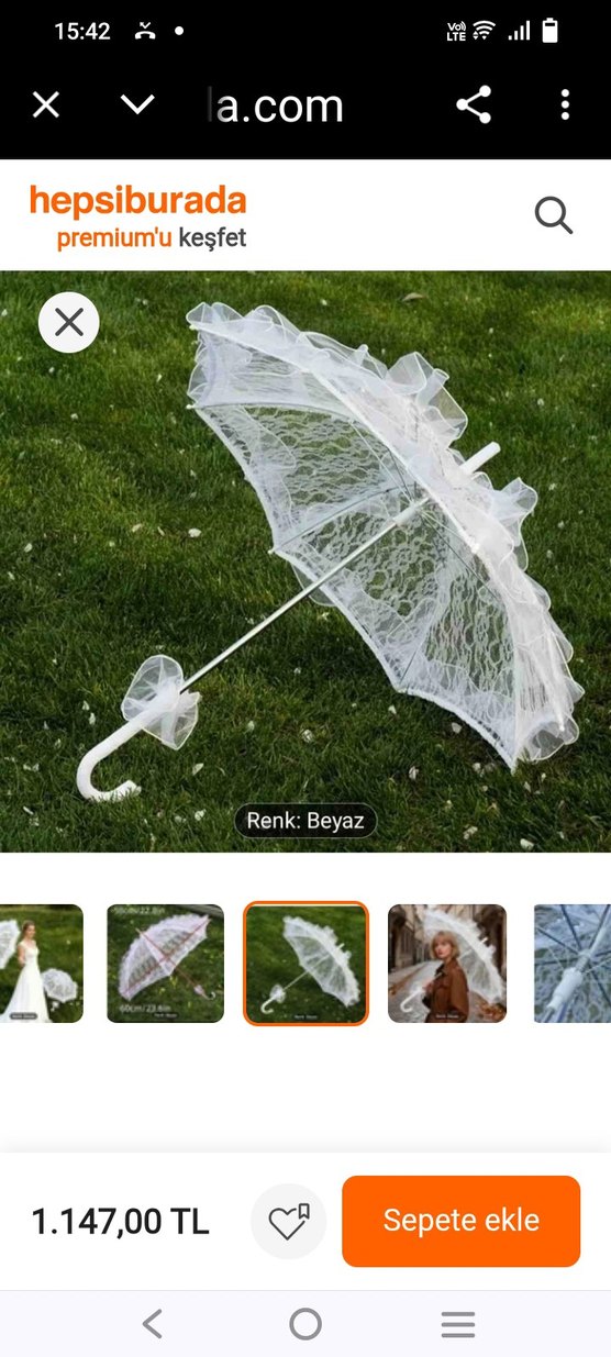 Dantel Detaylı Beyaz Kadın Şemsiye