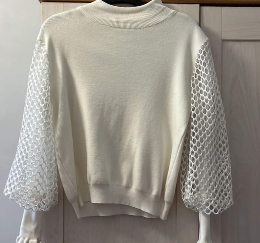 Dantel Detaylı Beyaz Kadın Triko Sweatshirt