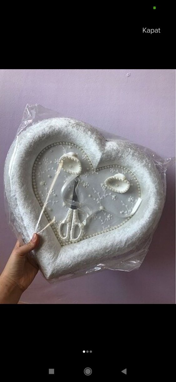 Dantel detaylı beyaz kalp şekilli düğün aksesuarı, yumuşak dokulu ve rahat bir atmosfer için uygun. Uyumlu makas ile birlikte gelir. sadece 250 TL ömür boyu hatıra olarak saklanabilir