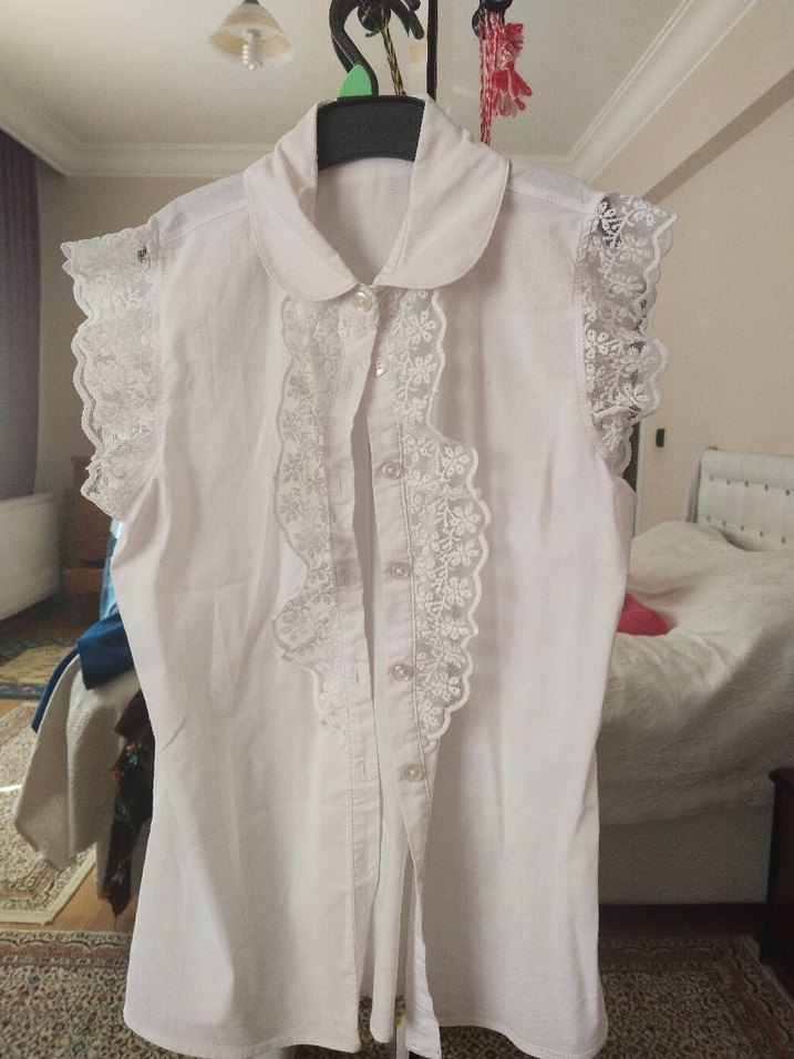 Dantel Detaylı Beyaz Kısa Kollu Gömlek