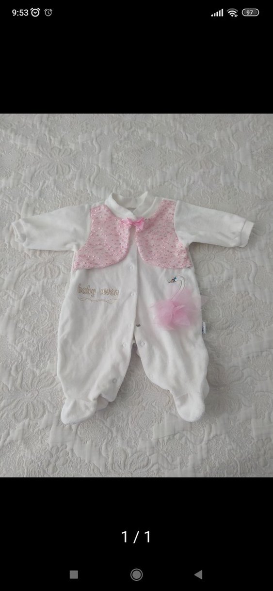 Dantel ve işleme detaylı, ayaklı beyaz kız bebek tulumu. Yumuşak kumaştan, çıtçıtlı kapanışlı.