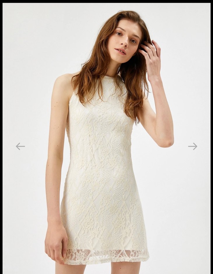 Dantel Detaylı Beyaz Kolsuz Midi Elbise