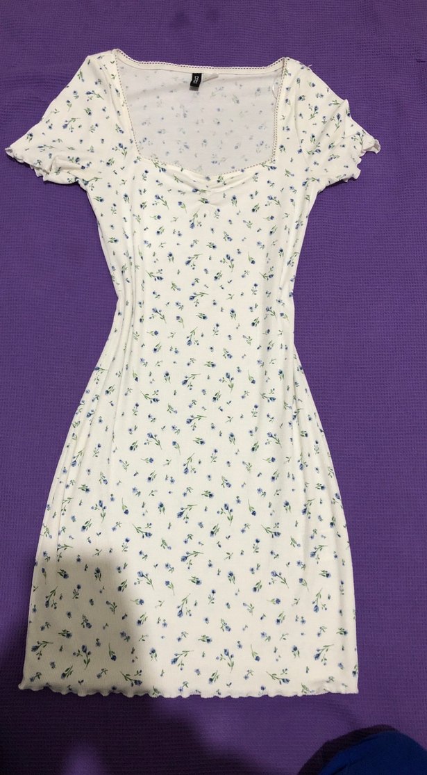 Pamuklu, kısa kollu, V yaka, dantel detaylı, pastel tonlarda beyaz midi elbise. Fitted kesimle rahat bir görünüm sunar.