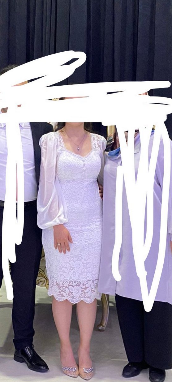 M-l beden bir kere nikahta giyildi esnek kumaş balon kol,kolları şifon kalp yaka,dantel detay güpürlü içi astarlı elbise