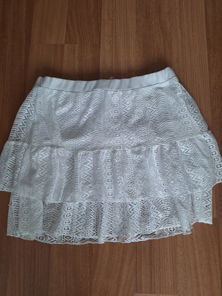 Dantel Detaylı Beyaz Mini Etek