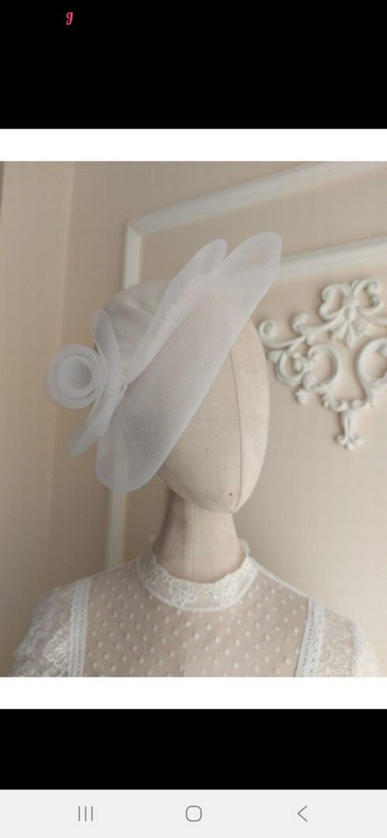 Beyaz renkte, dantel detaylı ve modern klasik tarzda, hafif ve zarif tasarıma sahip gelin şapkası.