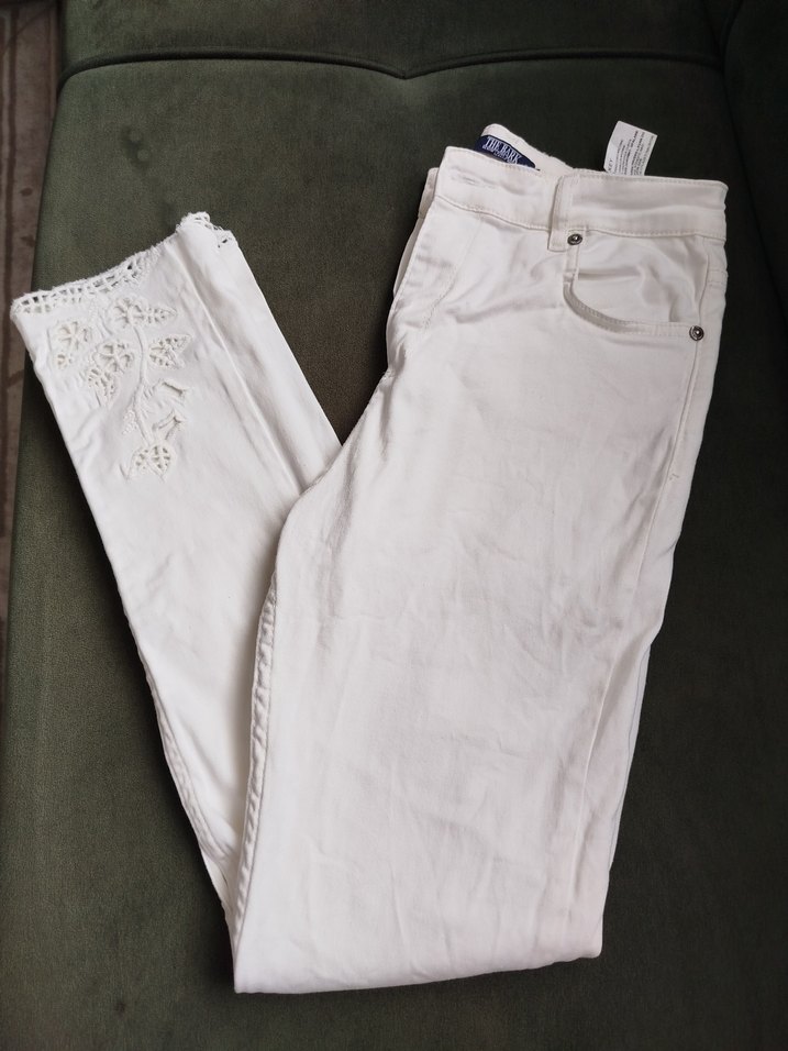 Nakışlı ve dantel detaylı beyaz pamuk kot pantolon. Regular fit, günlük kullanıma uygun, likralı yeri çok rahat bir pantolon sadece bir defa kullanıldı. #beyazpantolon #pantolon #zara #lcw #defacto #koton #bershka #littlebig