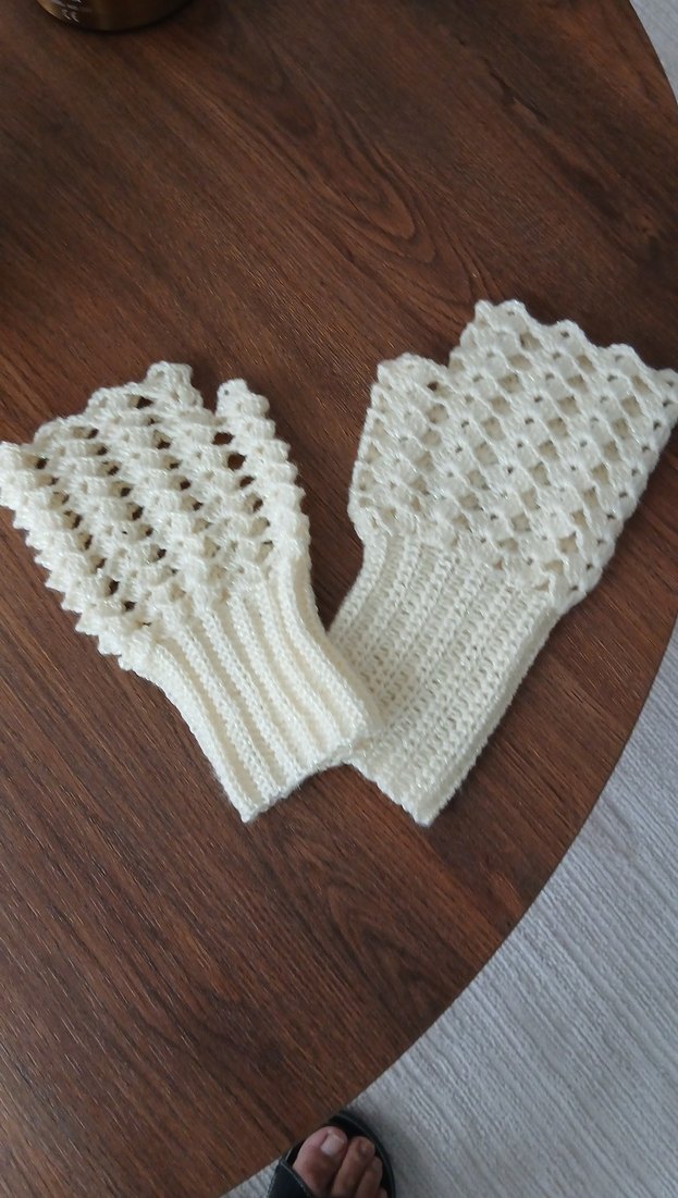 Dantel detaylı beyaz örgü eldivenler, rahat ve klasik bir tarz sunar.