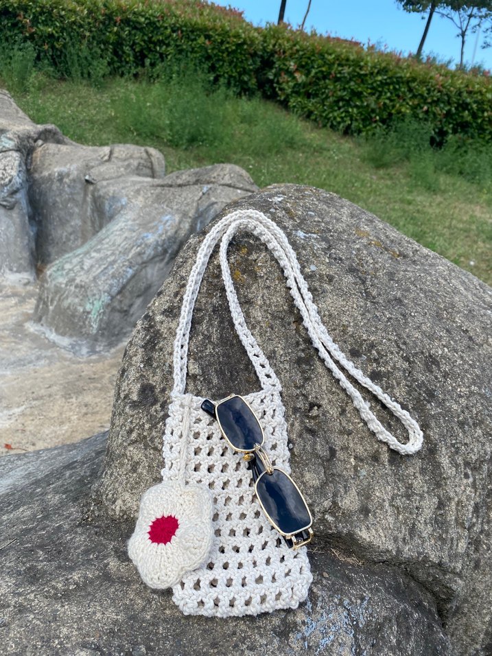 Çiçek desenli kulaklık kılıfı hediye. Beyaz örgü çapraz çanta, dantel ve nakışlı çiçek detaylarıyla bohem tarzını yansıtır. Uzun askılı, yumuşak dokulu, günlük kullanıma uygundur.