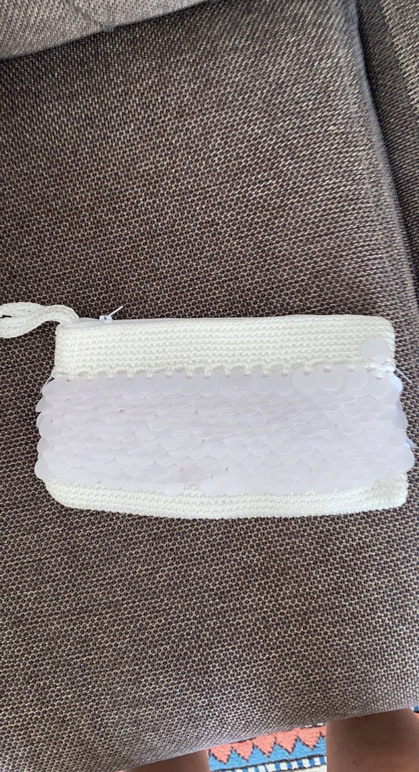 Dantel detaylı, işlemeli desenlere sahip beyaz örgü kadın portföy çanta, rahat bohem tarzıyla günlük kullanıma uygundur El yapımıdır.