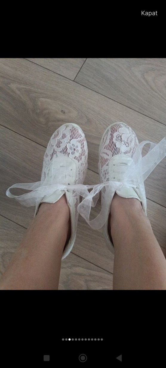 Dantel detaylı, sentetik kumaşlı beyaz kadın spor ayakkabısı, stiletto topuklu ve bohem tarzda. Düğün için uygundur. fiyatta yardimci olurum