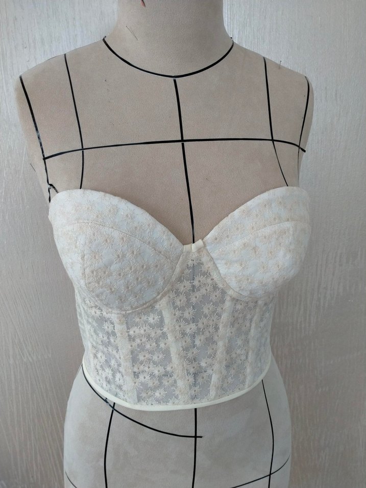 Dantel detaylı, beyaz straplez bustiyer. Bohem midi boy stilinde, günlük kullanıma uygun Parisyen avangart dokunuşlu. Ürün görsel amaçlı kendi dikiyorum sipariş üzerine istenilen ölçüde dikilir.