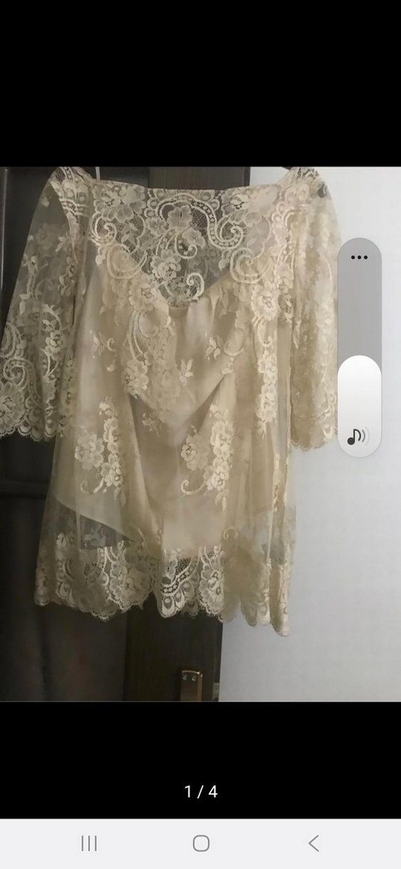 Dantel işlemeli, kısa kollu, beyaz straplez mini bluz. Bol kesim ve bohem tarzda, düğünler için uygun.