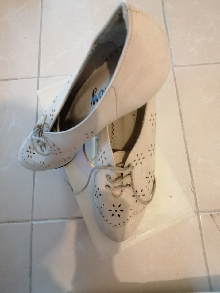 Dantel detaylı beyaz süet dolgu topuk ayakkabılar, vintage bohem tarzda, düğünler için uygun şık ve rahat tasarım.