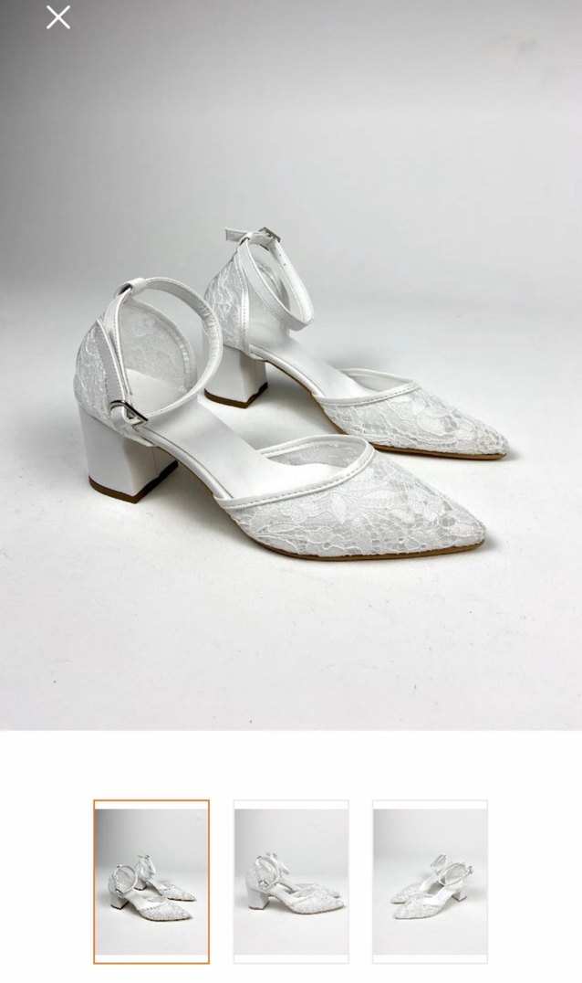 Beyaz, blok topuklu kadın ayakkabısı, dantel detaylarıyla şık ve klasik bir tasarıma sahiptir. Sentetik kumaştan yapılmış olup düğünler için uygundur.