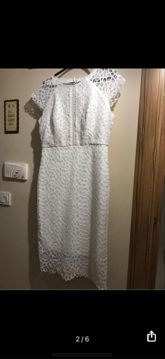 Dantel Detaylı Beyaz Uzun Abiye Elbise
