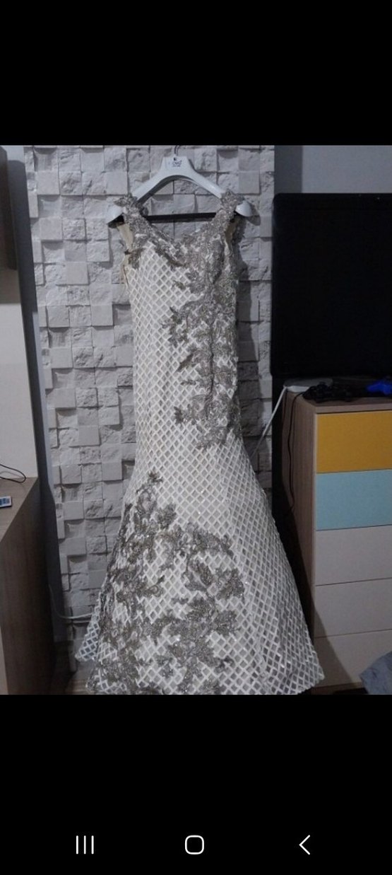 Dantel Detaylı Beyaz Uzun Kadın Abiye