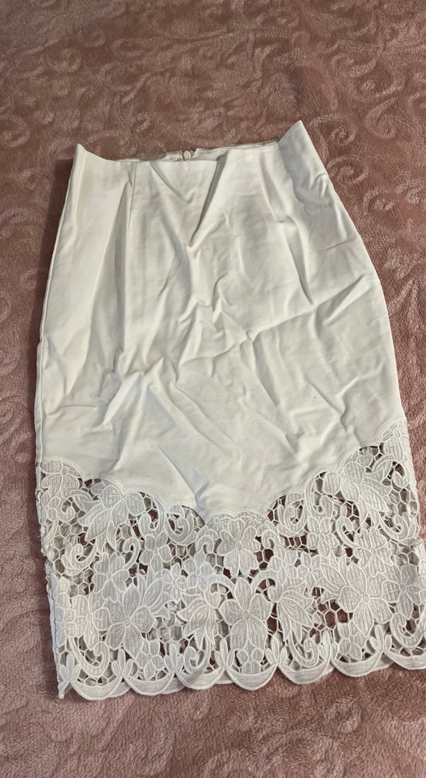 Dantel detaylı, işlemeli desenlere sahip beyaz uzun ve dar kesim kadın eteği. Yumuşak sentetik kumaştan, klasik ve bohem Paris tarzını yansıtır.