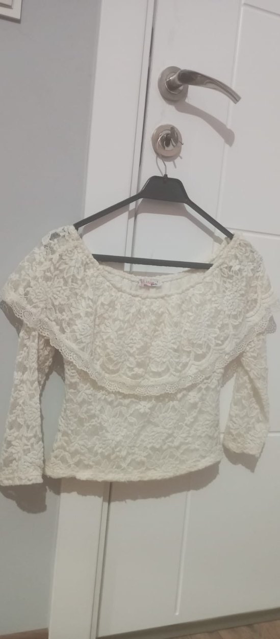 Dantel Detaylı Beyaz Uzun Kollu Bluz