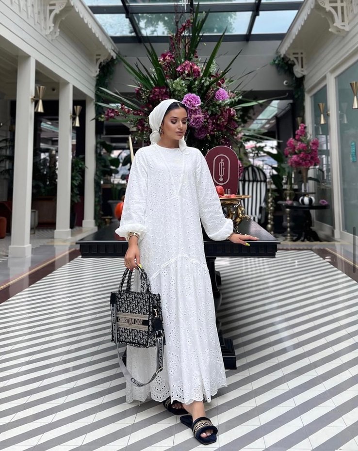 Dantel Detaylı Beyaz Uzun Salaş Elbise