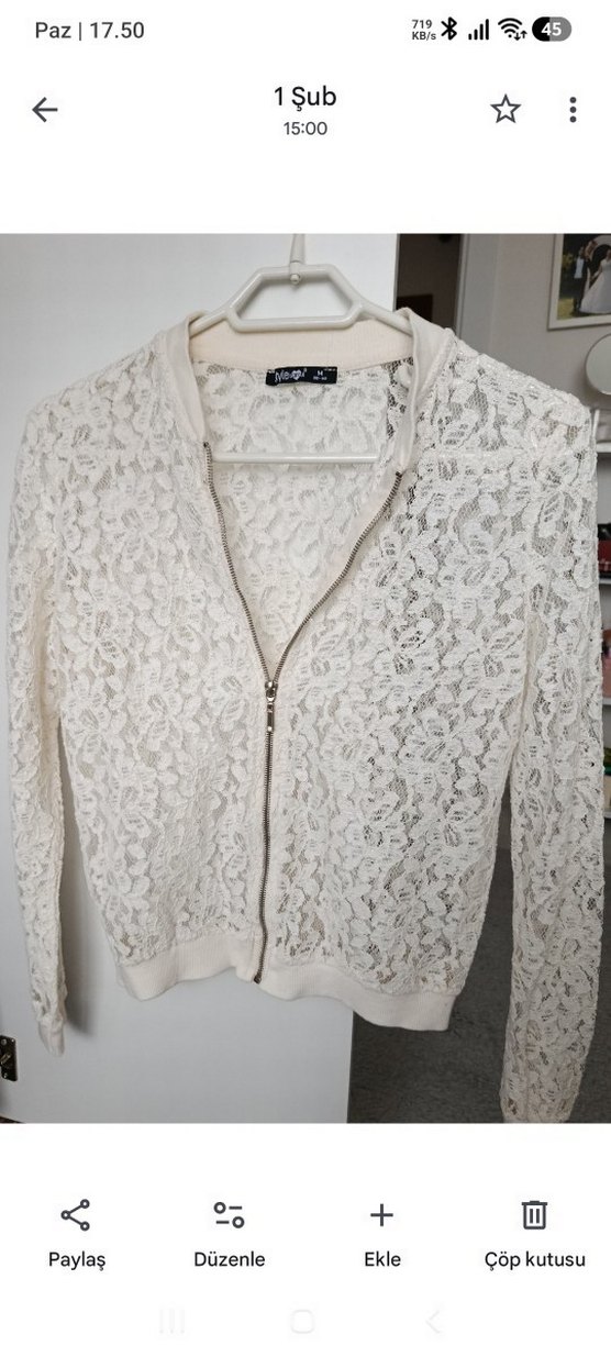 Dantel Detaylı Beyaz V Yaka Kadın Ceket