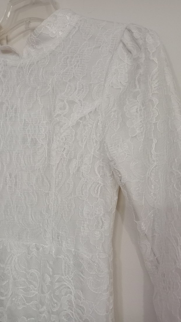 Dantel detaylı, V yaka ve uzun kollu beyaz nişanlık. Fitted kesimi ve bohem Paris tarzıyla klasik şıklık sunar.