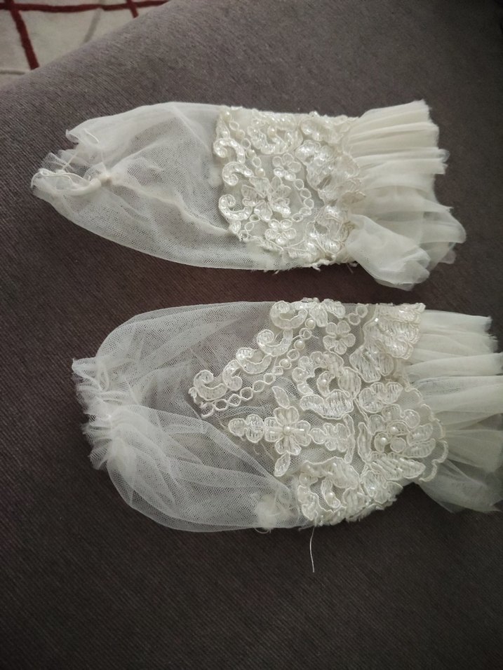 Beyaz dantelli, vintage bohem tarzında gelin kolluk.İnce nakış ve yumuşak kumaş ile şık ve zarif bir görünüm sunar.