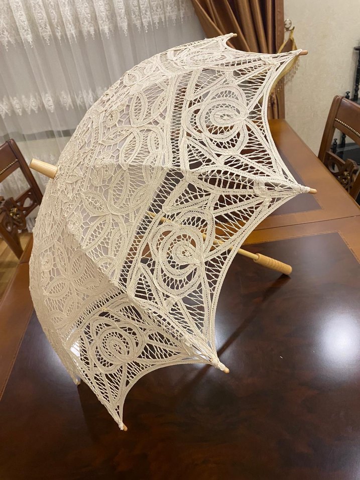 Klasik zarafete uygun, vintage bohem tarzda, detaylı dantel işlemeli beyaz kadın şemsiye. ☂️