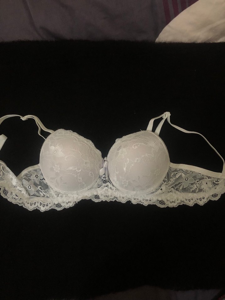 Beyaz renkte, dantel detaylı, vintage goth tarzında sütyen. Ayarlanabilir askılı ve normal boyda, zarif ve hafif bir görünüme sahip. beden75