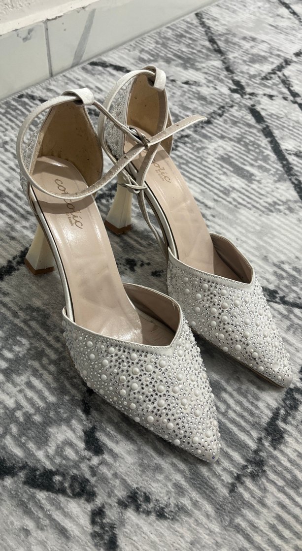 Dantel Detaylı Beyaz Yüksek Topuklu Kadın Ayakkabı