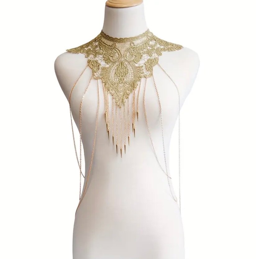 Dantel Detaylı Bohem Altın Rengi Vücut Zinciri