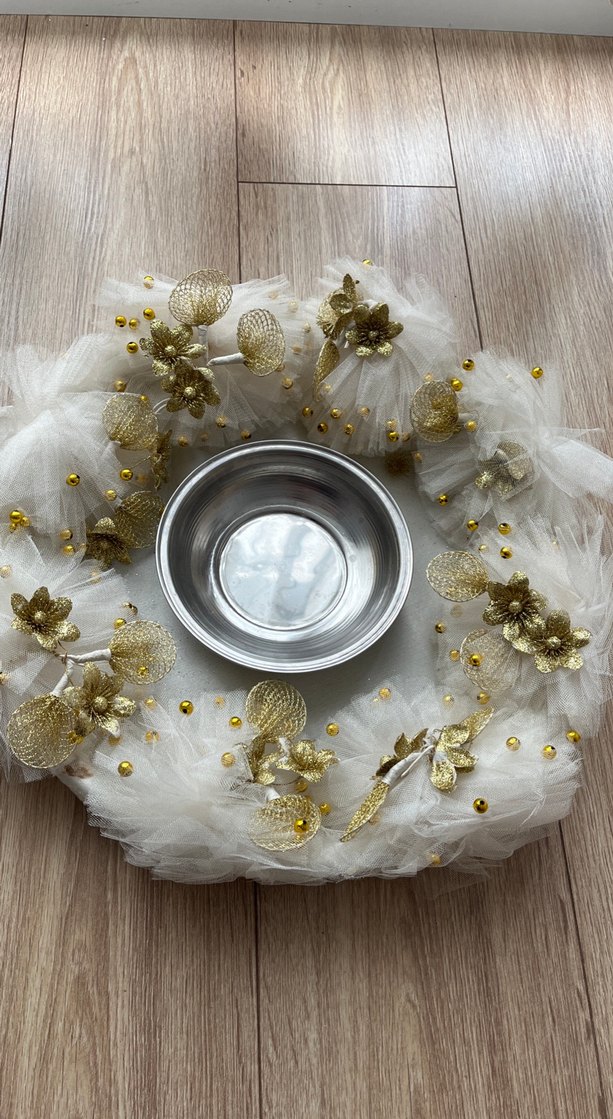 Dantel Detaylı Bohem Beyaz Gelin Aksesuarı kına tepsisi