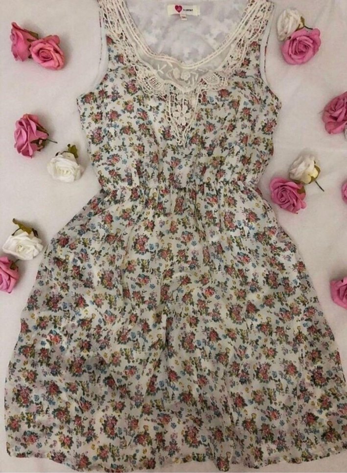 Dantel detaylı, V yakalı, bohem tarzda, çiçek desenli, pastel renklerde, kolsuz, normal boy midi elbise. Rahat ve şık bir görünüm sunar. aKoton markadır. Astarlıdır.Baharı karşılayan cıvıl cıvıl bu elbise belden büzgüsü sayensinde aşağıya doğru kiloş iner. Hem spor hem de topukluyla kombinlenebilmeye uygun bu parça 34-36 beden için uygundur. Boyu 85 cmdir. Bir kez kullanıldı.