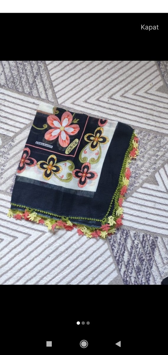 Kadınlar için çok renkli, koyu tonlarda çiçek desenli, dantel detaylı bohem tarzda yumuşak kumaştan eşarp.