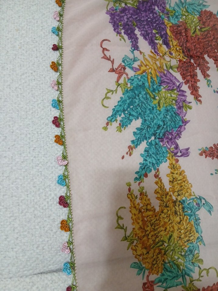 Bu kadın fuları, pastel çok renkli çiçek desenleri ve narin dantel el emeği yazma cenk yazması diğer ürünlere de baka bilirsiniz