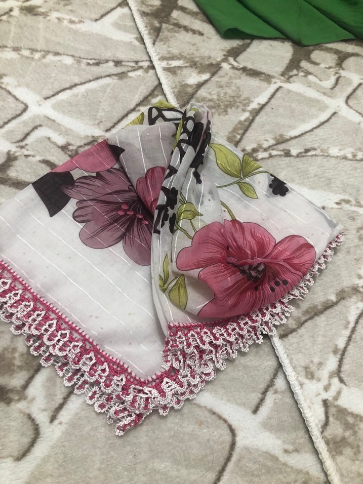 Bu kadın şalı, yumuşak tekstil kumaş üzerine pembe ve gri çiçek desenleriyle bohem tarzı sunar. Kenarları ince dantel detaylıdır.