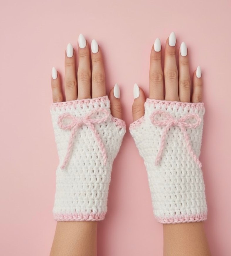 Dantel detaylı, fiyonk süslemeli beyaz örgü eldivenler görsel bana aitir istediğiniz modele renge göre yapılır