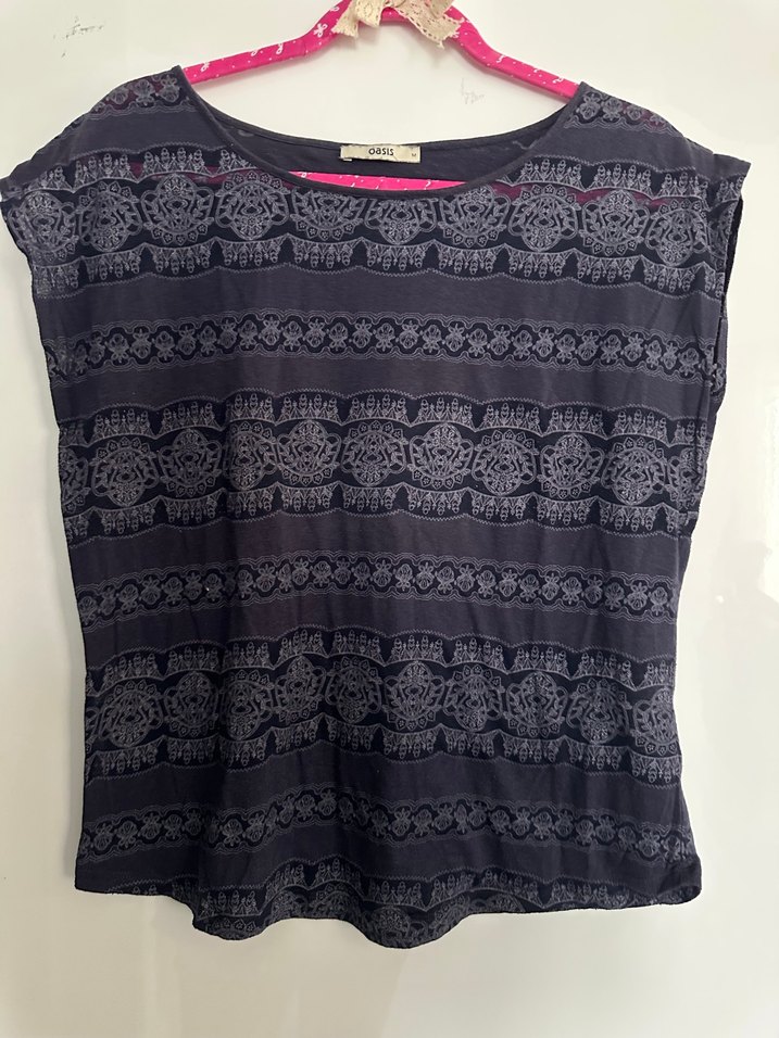 dantel detaylı, salaş kesim ve kayık yaka kolsuz bohem bluz. Temiz kullanıldı