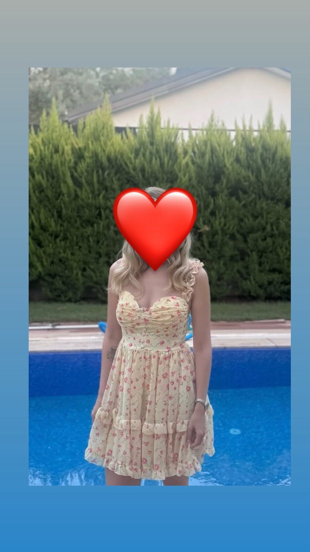 Dantel detaylı, V yakalı ve askılı, pastel tonlarda tie-dye desenli, bohem tarza uygun fitted midi elbise.