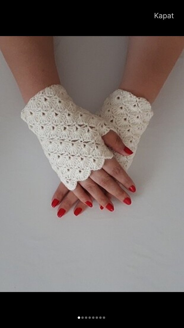 Beyaz renkli, dantel detaylı örgü eldivenler, bohem tarzıyla sıcak ve retro bir görünüm sunar.
