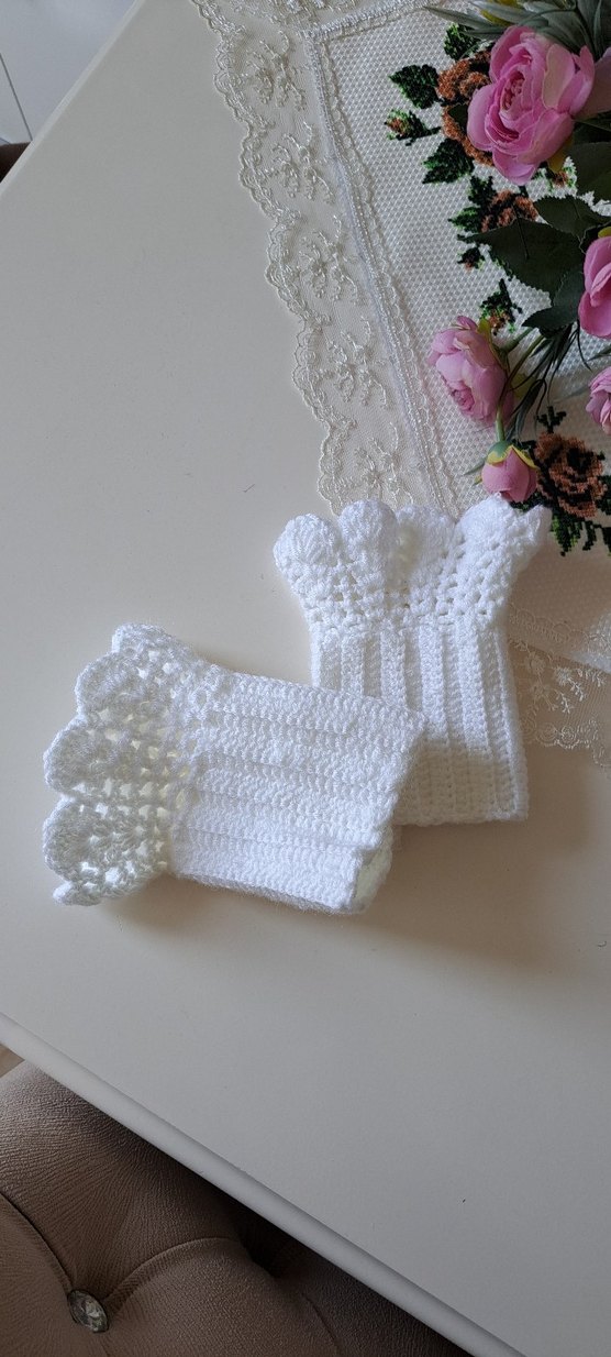 Beyaz örgü eldivenler, zarif dantel detaylarıyla bohem tarzı ve rahat dokuyu bir araya getiriyor. Retro ve hippie görünüme uygun. ölçulerı görselde mevcut marka temsılıdır