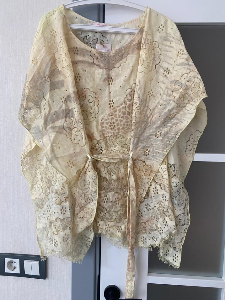 Bej renkte, nakışlı dantel detaylı pareo her bedene olur