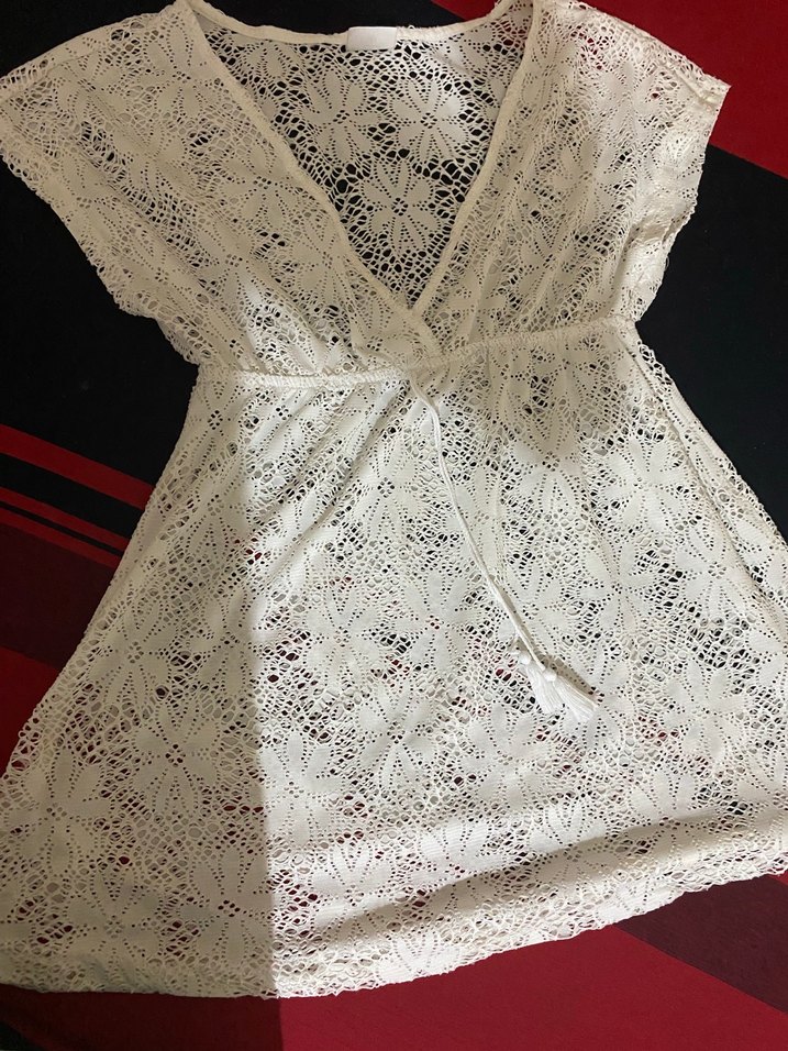 Dantel işlemeli, V yaka ve askılı kollu, bohem tarzda, normal uzunlukta ve vücuda oturan deniz pepperoni .
